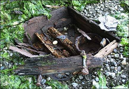 Not much is left of the lid, and the contents were encased in river mud of a claylike composition which has preserved much of the wood over the centuries. Great care was taken to
