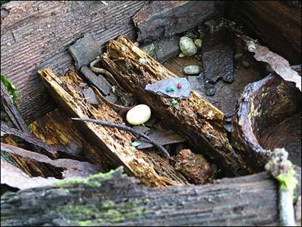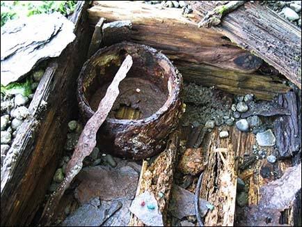 remove the mud and leave the contents undisturbed as much as possible. Artifacts include a curved metal needle for sewing hides; some small turquoise gem stones; a white moonstone,
