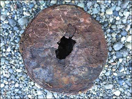 On the bottom of the metal taämlin one can barely discern circles and triangles, which would be the notation for Liita's bäl. The notation once continued all the way around,